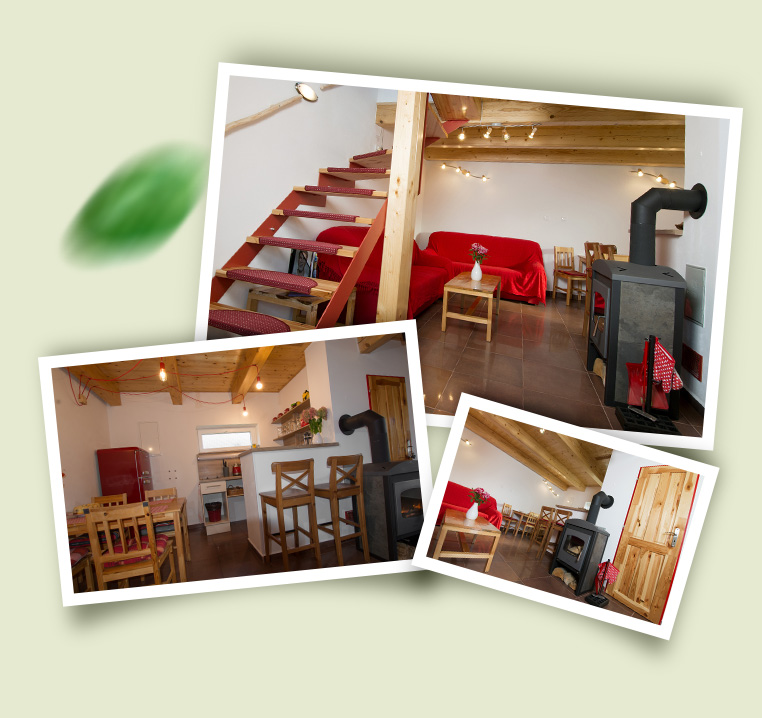 Ubytování je situováno jako mezonetový apartmán, v přízemí posezení s TV, kuchyňku a koupelnu. V patře ložnice s osmi lůžky.